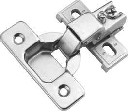 Semi-Concealed: A part of the hinge is showing, typically the cabinet wing is exposed and the door wing is concealed.
