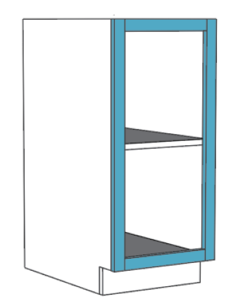 Face Frame: The cabinet face is constructed of vertical “stiles” and horizontal “rails” that reinforce the cabinet structure and provide mounting support for doors and drawers.